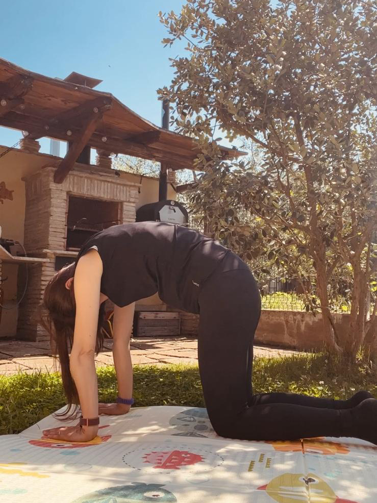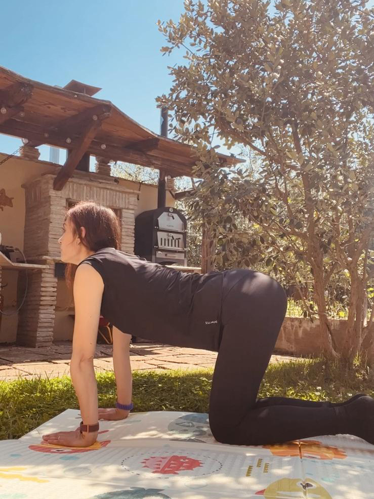 🤰🏻In gravidanza ti consiglio di dedicarti pochi minuti al giorno a svolgere attività fisica ponendo l’attenzione soprattutto ad esercizi che mirano alla mobilità della colonna vertebrale come quello che vedi in figura e alla consapevolezza del tuo pavimento pelvico imparando a contrarlo e rilassarlo.